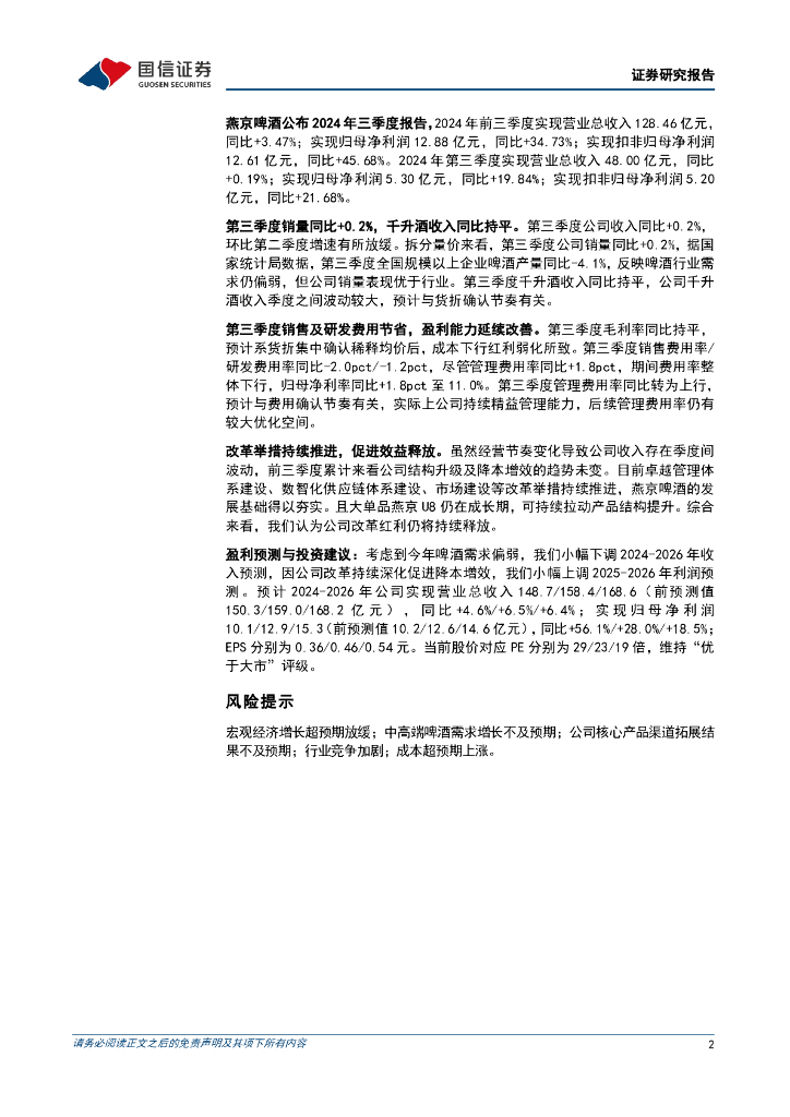 国信证券:燕京啤酒(000729)-第三季度收入同比增长0.2%,盈利能力延续改善.pdf