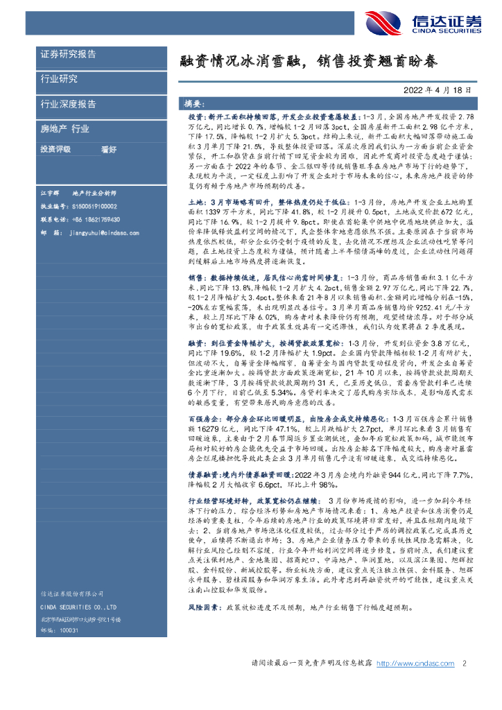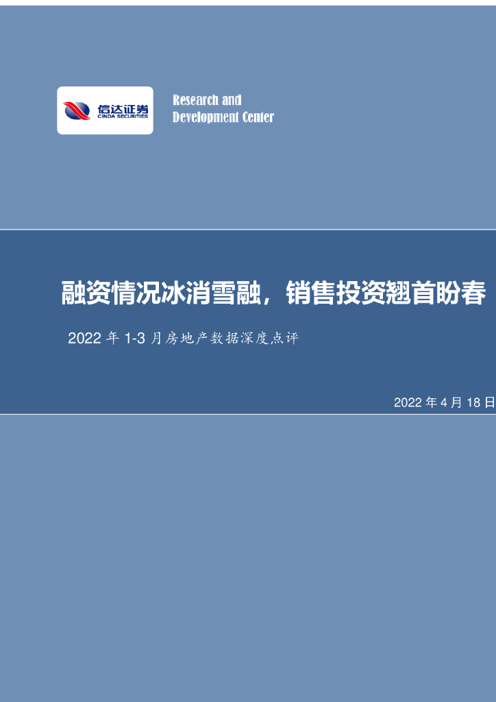 信达证券:2022年1-3月房地产数据深度点评:融资情况冰消雪融,销售投资翘首盼春.pdf