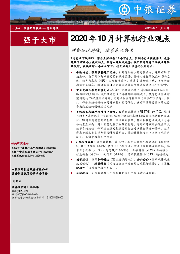 中银证券:2020年10月计算机行业观点:调整加速到位,政策东风将至.pdf