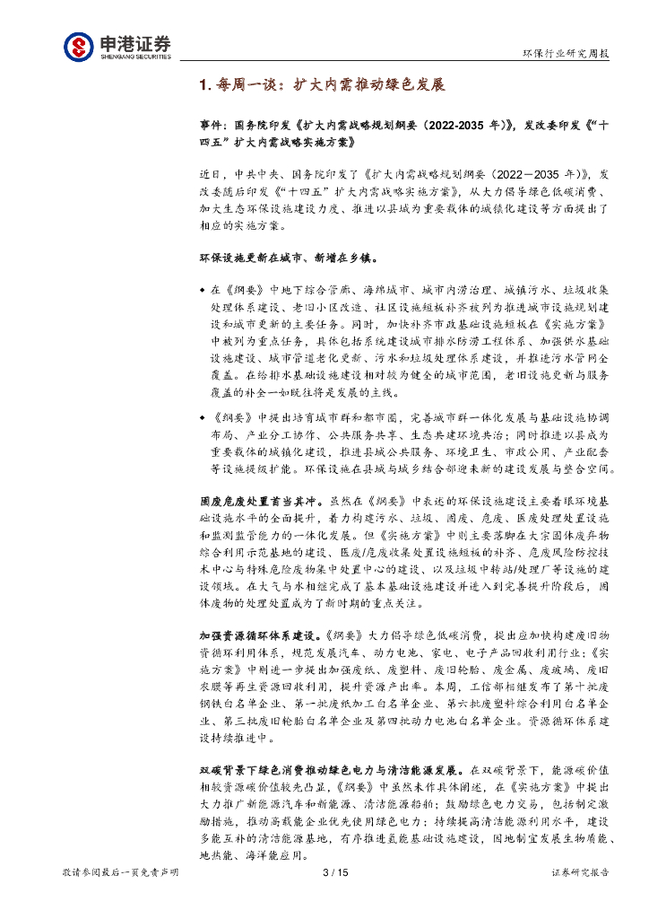申港证券:环保行业研究周报:扩大内需推动绿色发展.pdf
