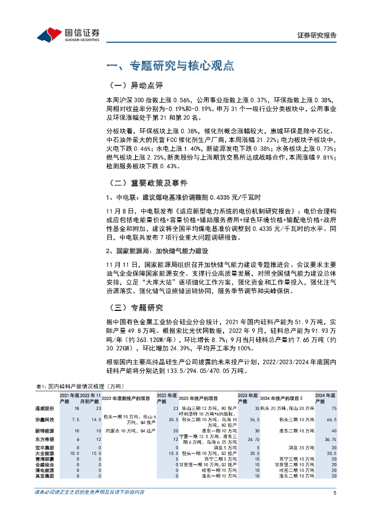 国信证券:环保与公用事业202211第2期:中电联建议调升煤电基准价,硅料硅片价格迎下降拐点.pdf