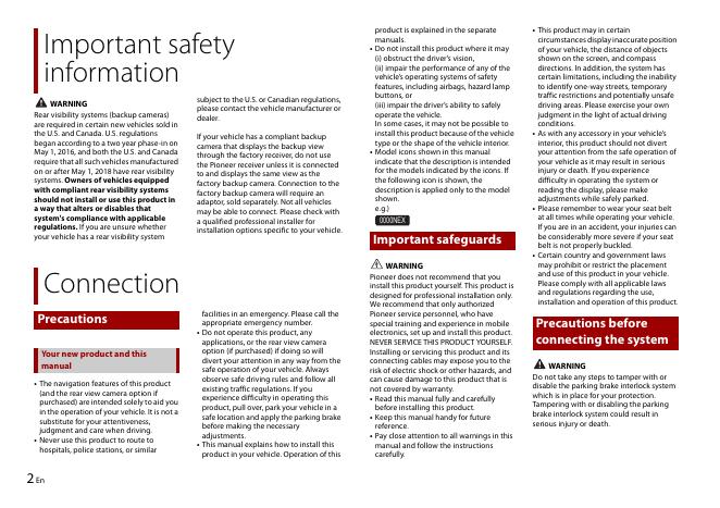 Pioneer AVIC-W8600NEX和AVIC-W6600NEX车载多媒体导航接收器安装手册.pdf