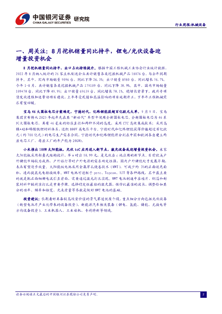 中国银河:机械设备行业周报:8月挖机销量同比持平,锂电/光伏设备迎增量投资机会.pdf