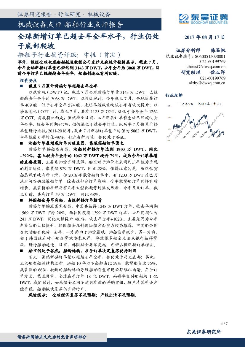 东吴证券:船舶行业点评报告:全球新增订单已超去年全年水平,行业仍处于底部爬坡.pdf