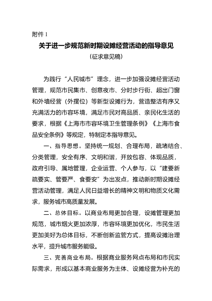 上海市关于进一步规范新时期设摊经营活动的指导意见(征求意见稿).doc