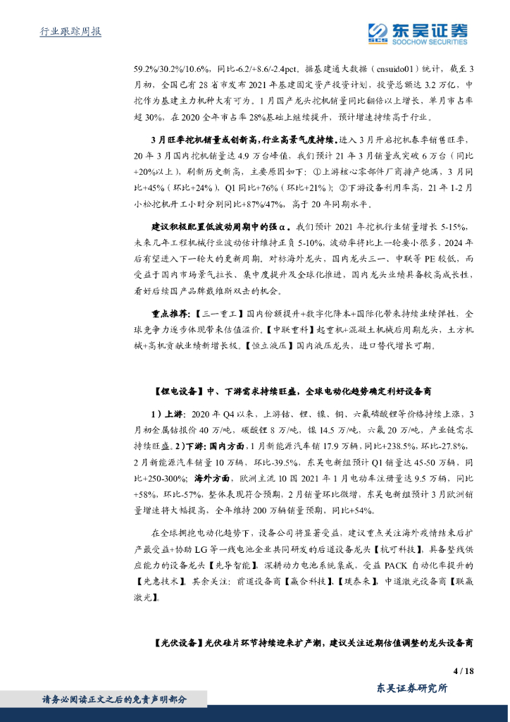 东吴证券:机械设备行业跟踪周报:建议关注Q1有望超预期的机床、工程机械板块,估值回落的新能源设备板块.pdf