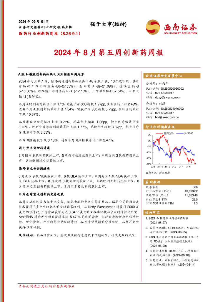 西南证券:医药行业创新药周报:2024年8月第五周创新药周报.pdf
