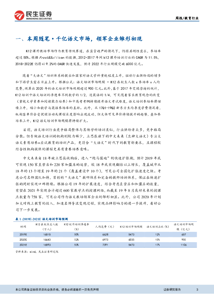 民生证券:教育行业周报:K12教培刚性需求,看好语文培训景气度上行.pdf