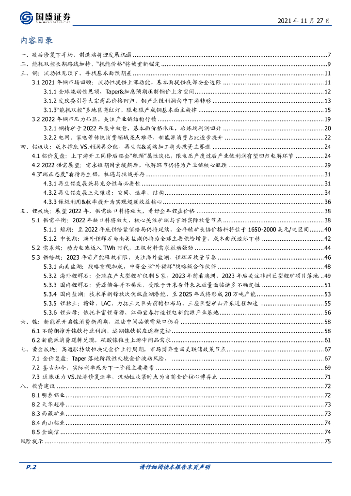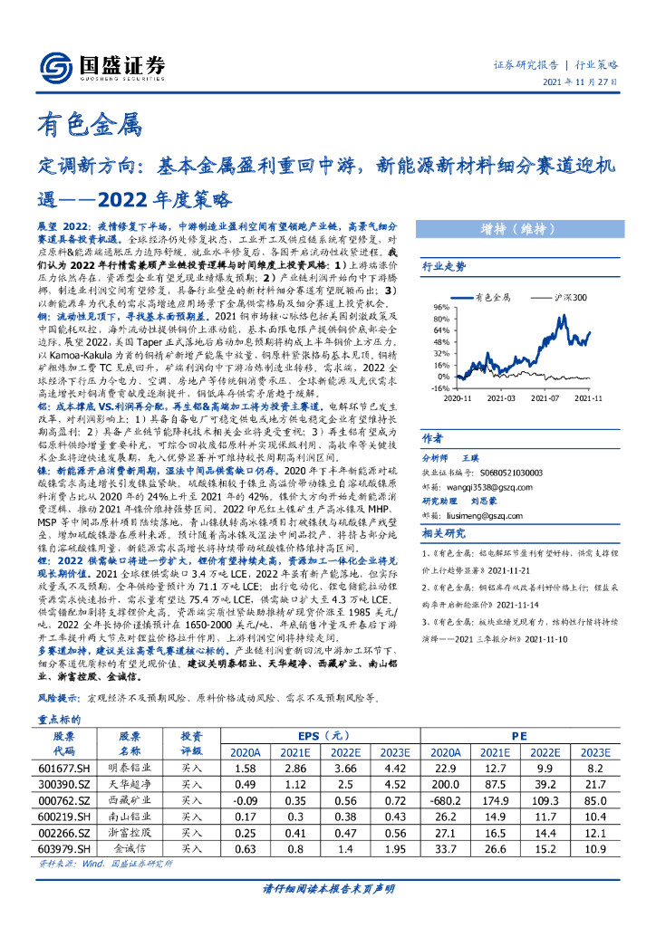 国盛证券:有色金属2022年度策略:定调新方向:基本金属盈利重回中游,新能源新材料细分赛道迎机遇.pdf