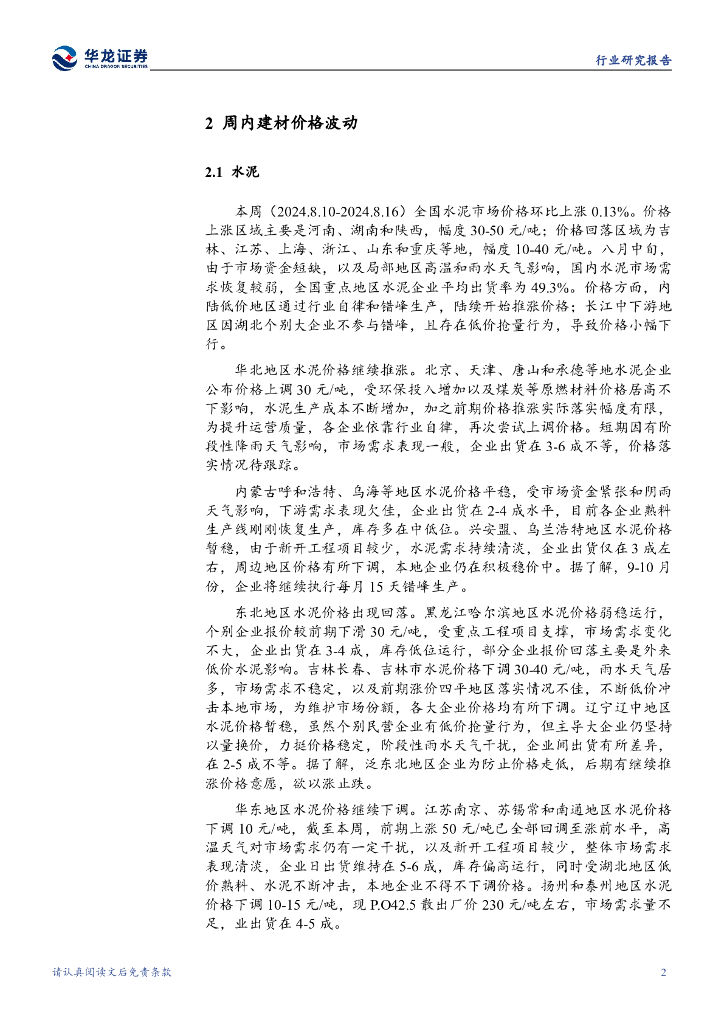 华龙证券:建筑材料行业周报:传统淡季需求疲软价格下行,关注供给侧变动情况.pdf