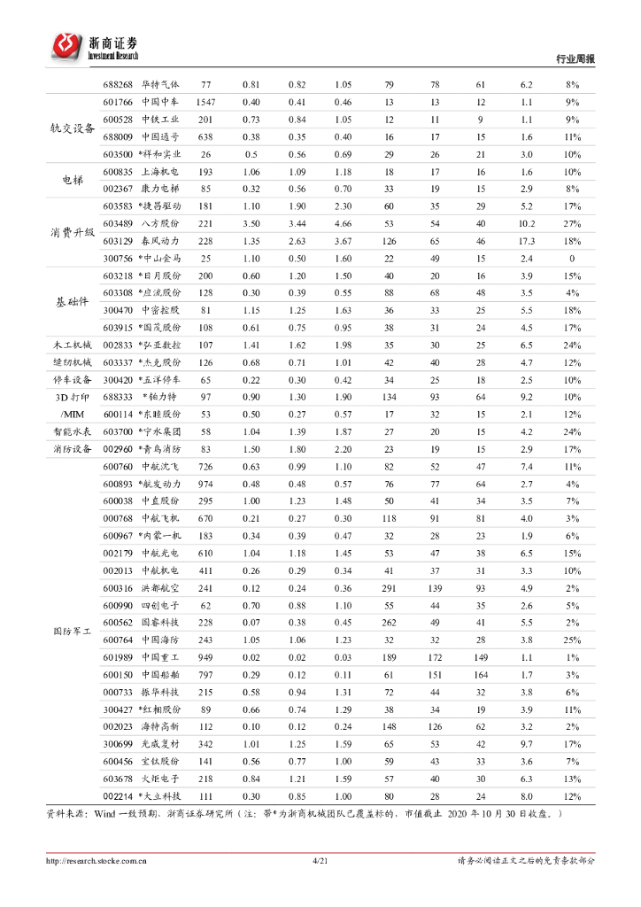 浙商证券:机械军工行业周报(2020年10月第4周):装备制造业细分龙头三季报整体略超预期,景气度持续.pdf