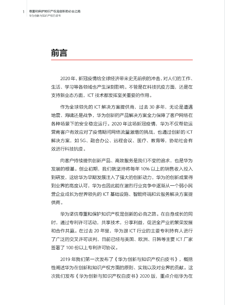 华为创新和知识产权白皮书(2020版)尊重和保护知识产权是创新的必由之路.pdf