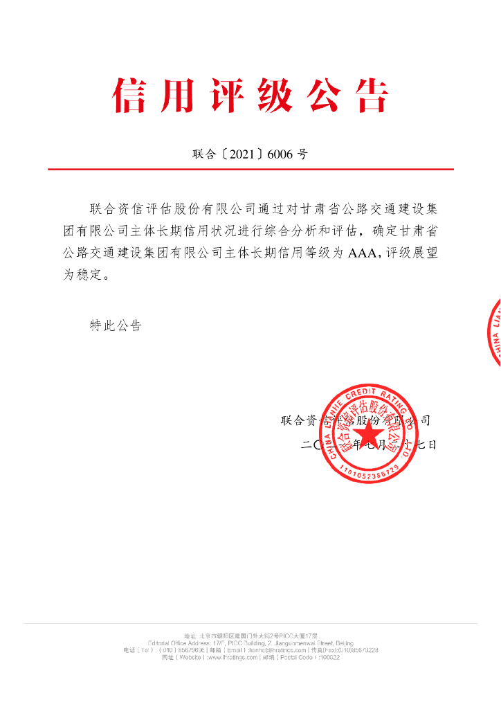 联合资信:甘肃省公路交通建设集团有限公司主体信用评级报告及跟踪评级安排-联合资信.pdf