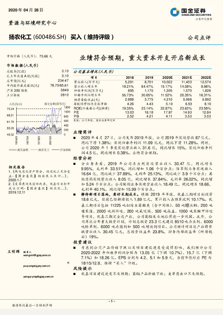 国金证券:扬农化工(600486)-业绩符合预期,重大资本开支开启新成长.pdf