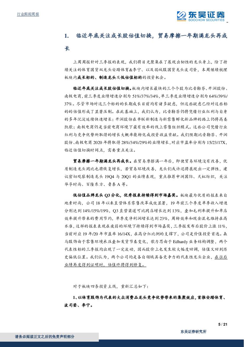 东吴证券:纺织服装行业:临近年底关注成长股估值切换,贸易摩擦一年期满龙头再成长.pdf