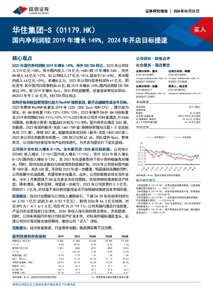国信证券:华住集团-S(01179)港股公司研究报告-国内净利润较2019年增长149%,2024年开店目标提速.pdf