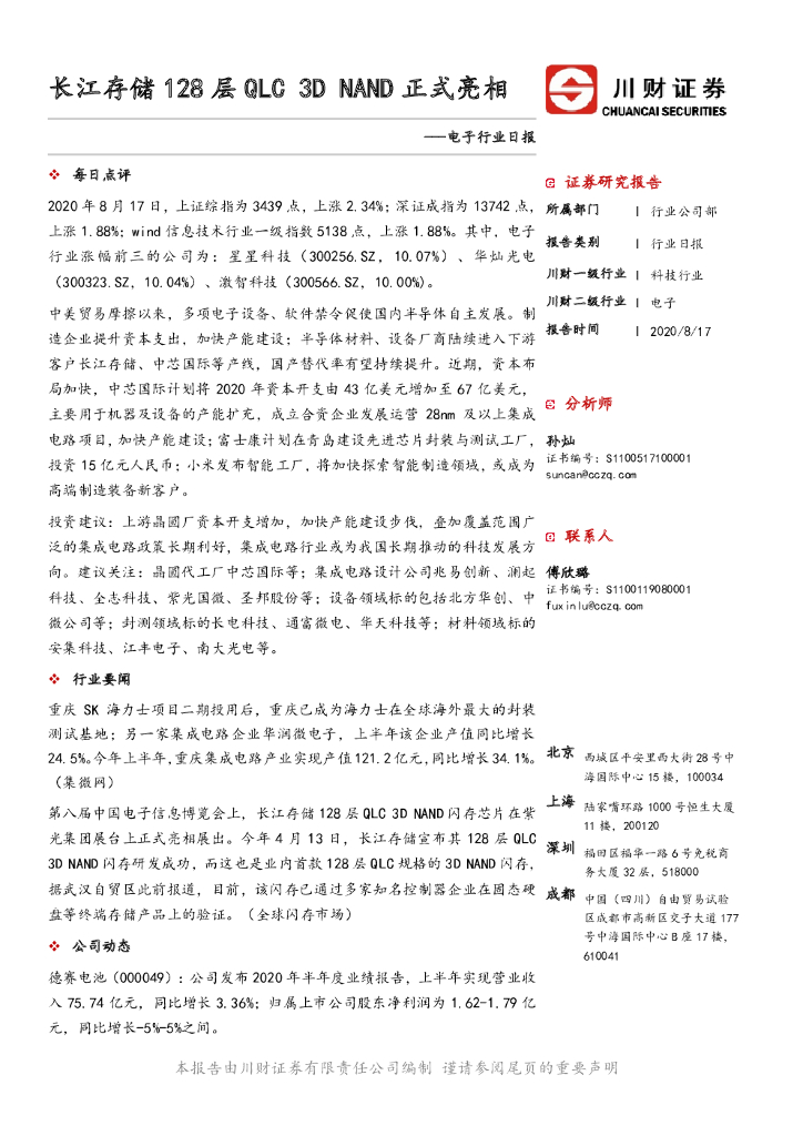 川财证券:电子行业日报:长江存储128层QLC 3D NAND正式亮相.pdf
