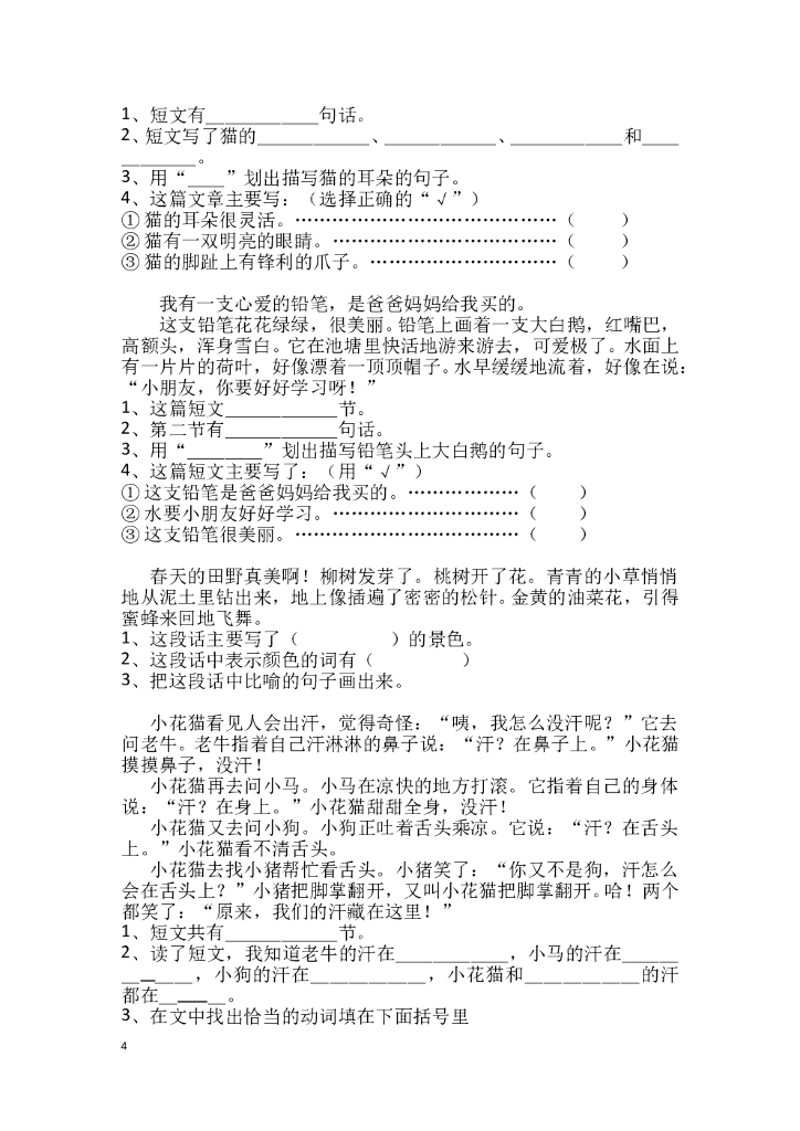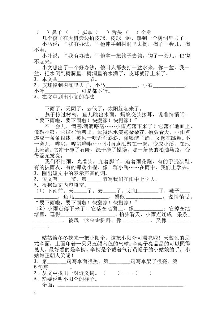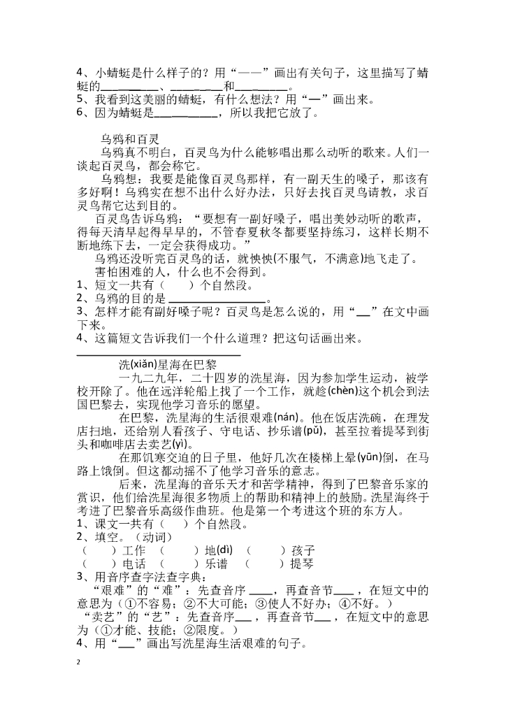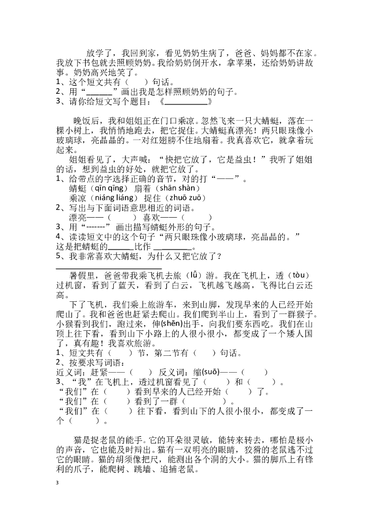 小学二年级上册语文阅读题【54页】.doc