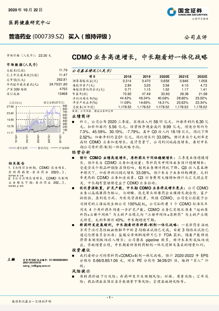 国金证券:普洛药业(000739)-CDMO业务高速增长,中长期看好一体化战略.pdf