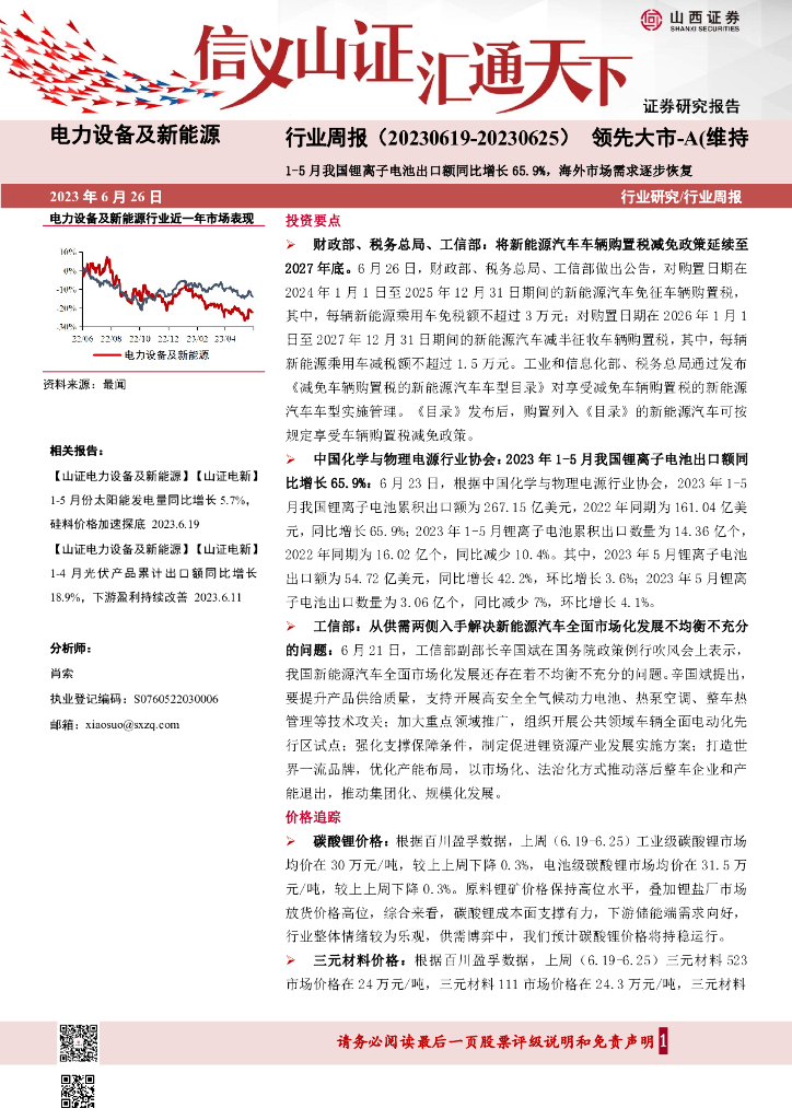 山西证券:电力设备及新能源行业周报:1-5月我国锂离子电池出口额同比增长65.9%,海外市场需求逐步恢复.pdf
