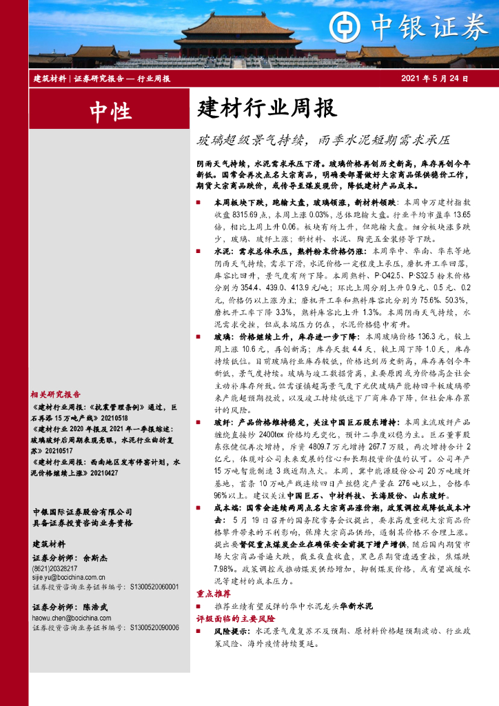 中银证券:建材行业周报:玻璃超级景气持续,雨季水泥短期需求承压.pdf