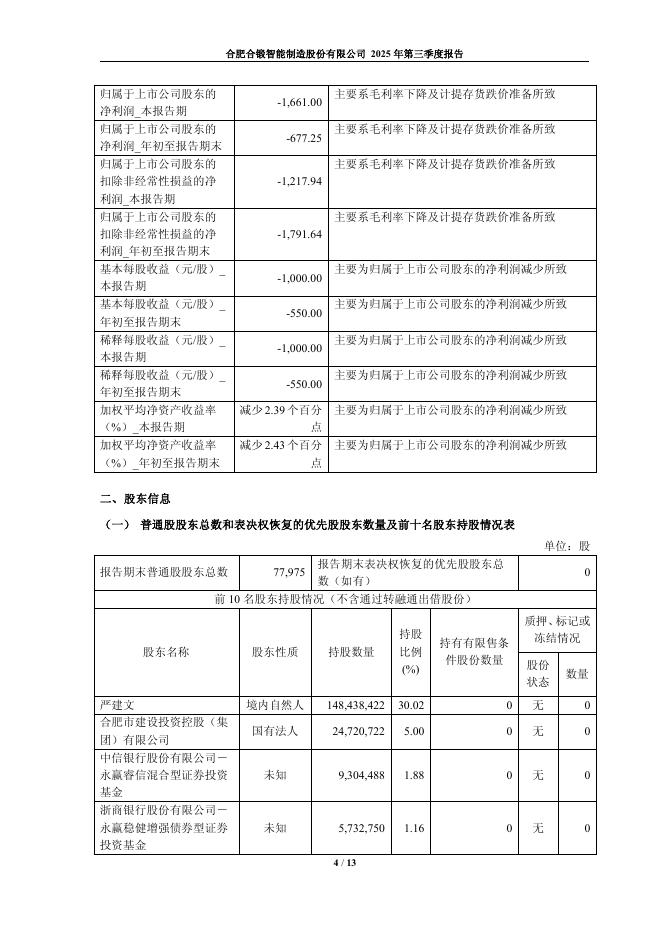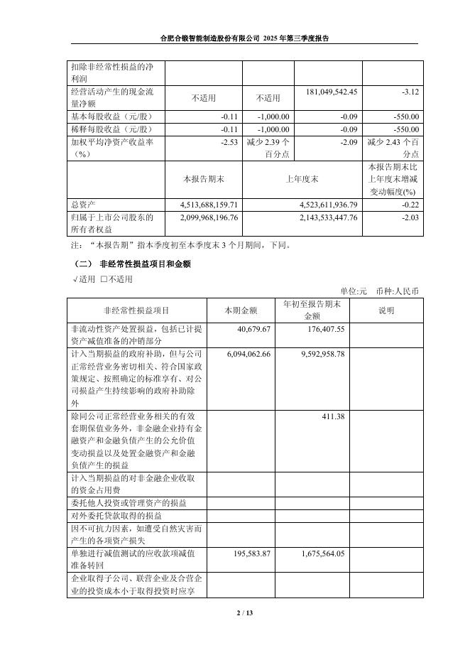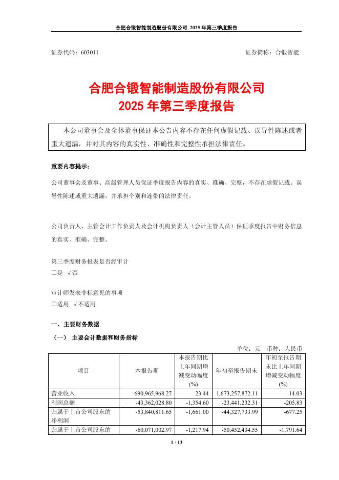 603011-合锻智能:合肥合锻智能制造股份有限公司2025年第三季度报告.pdf