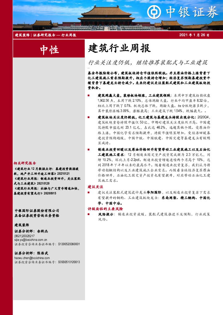 中银证券:建筑行业周报:行业关注度仍低,继续推荐装配式与工业建筑.pdf