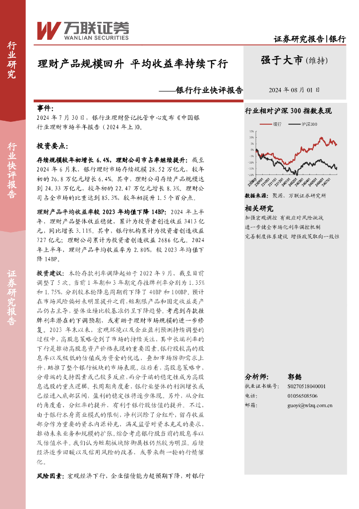 万联证券:银行行业快评报告:理财产品规模回升平均收益率持续下行.pdf