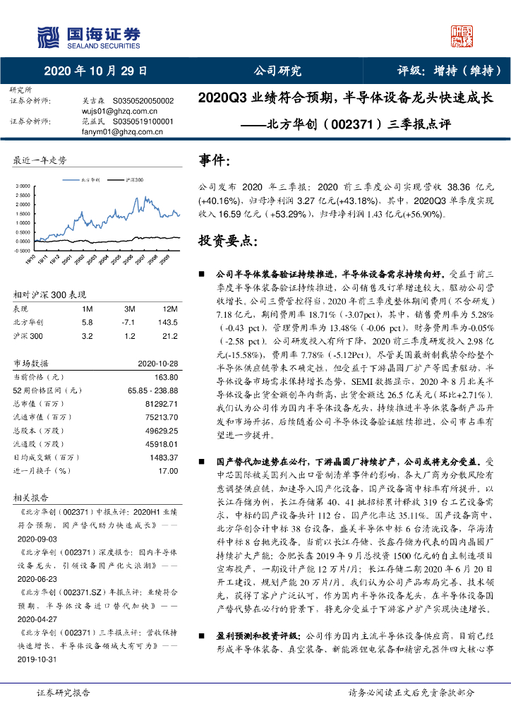国海证券:北方华创(002371)-三季报点评:2020Q3业绩符合预期,半导体设备龙头快速成长.pdf