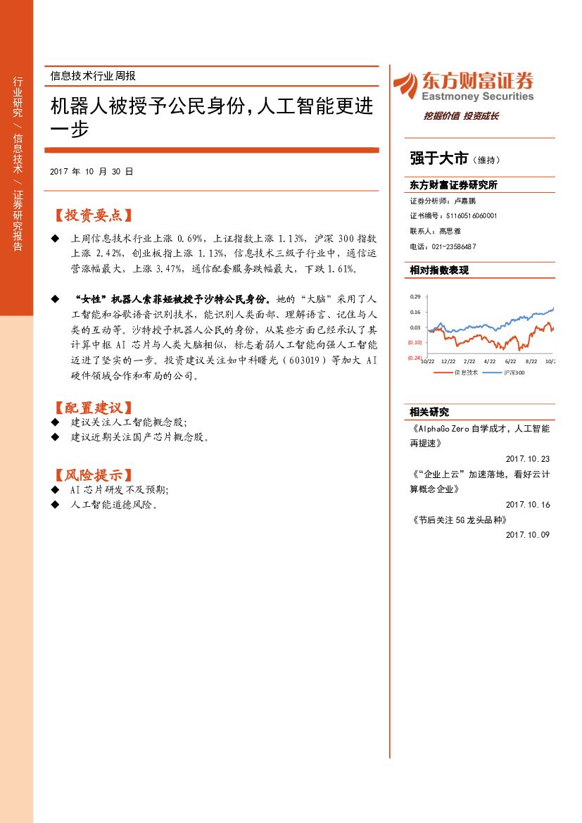 东方财富证券:信息技术行业周报:机器人被授予公民身份,人工智能更进一步.pdf