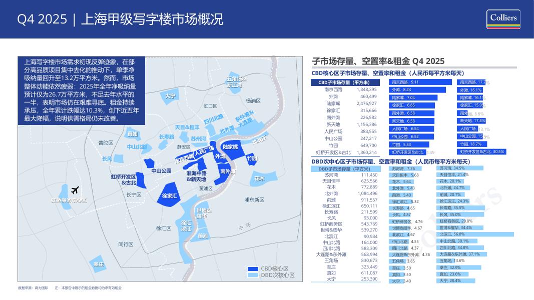 Colliers高力国际:2025年第四季度上海写字楼办公楼出租租金市场分析报告与发展前景趋势展望报告.pdf