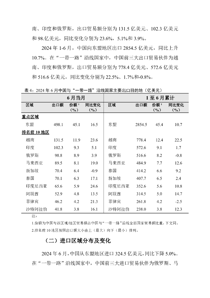 对外经济贸易大学:中国与“一带一路”沿线国家货物贸易月度监测报告(2024年1-6月).pdf