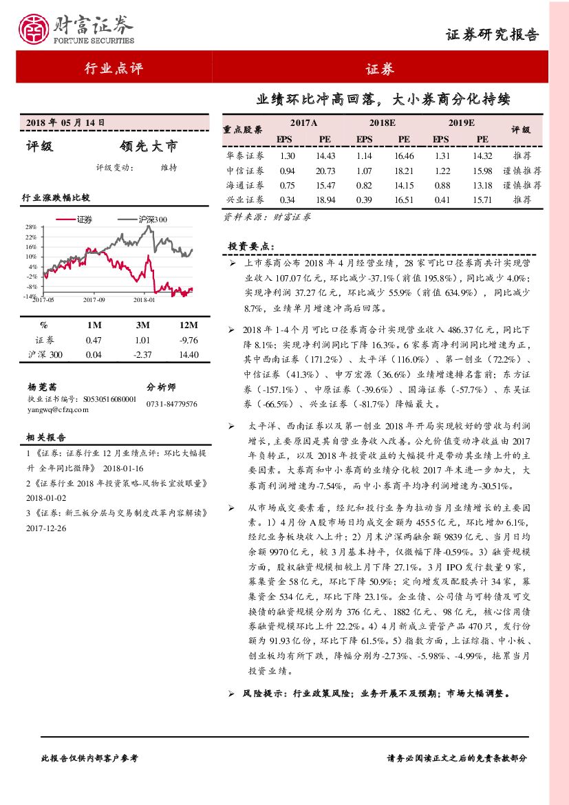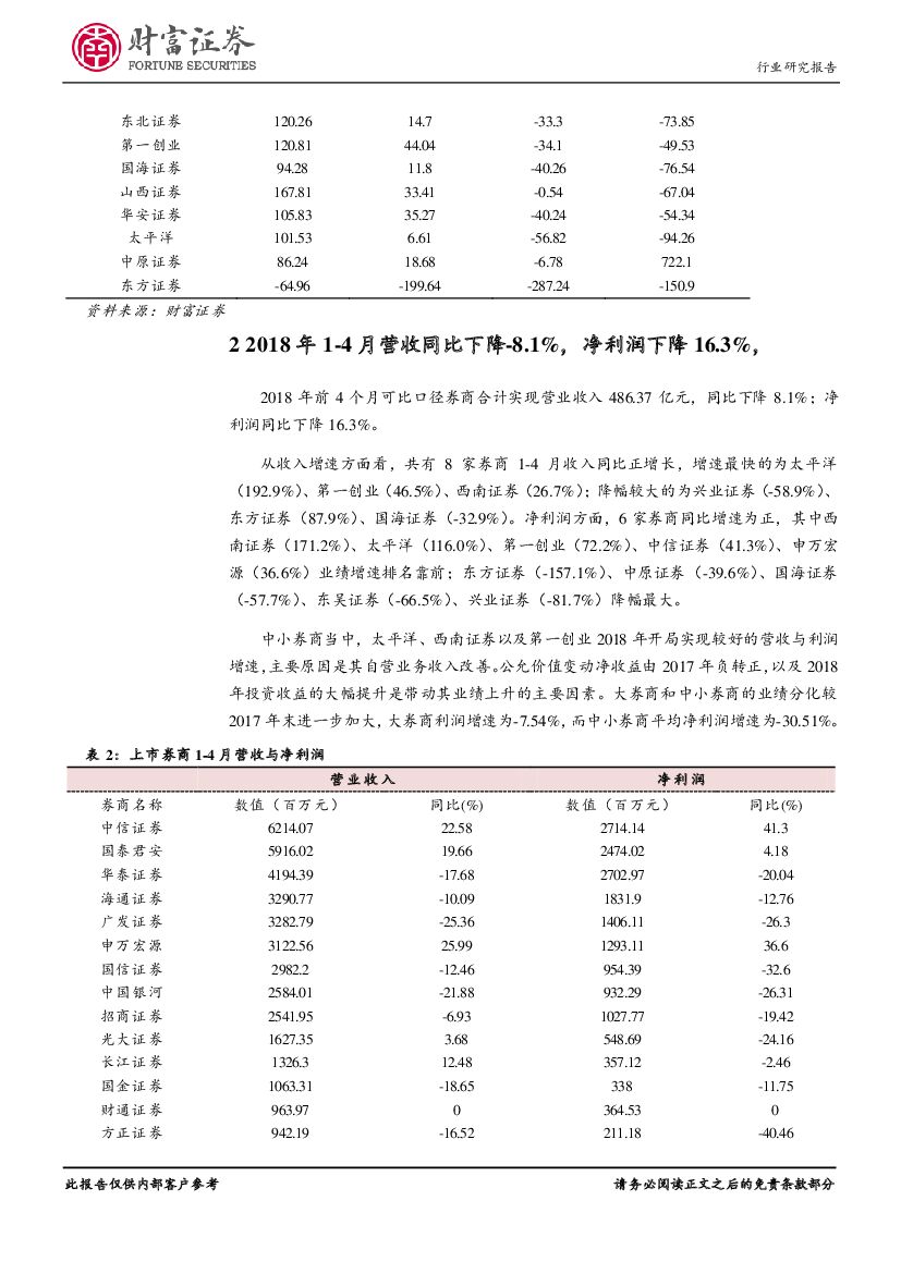 财富证券:证券行业点评:业绩环比冲高回落,大小券商分化持续.pdf