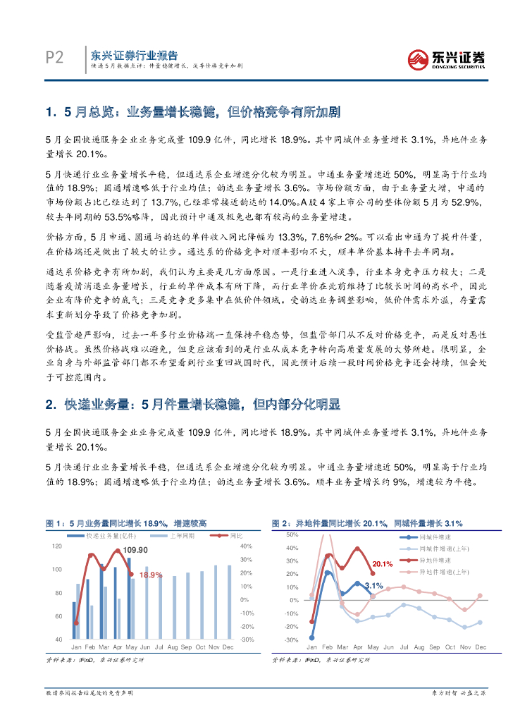 东兴证券:快递5月数据点评:件量稳健增长,淡季价格竞争加剧.pdf