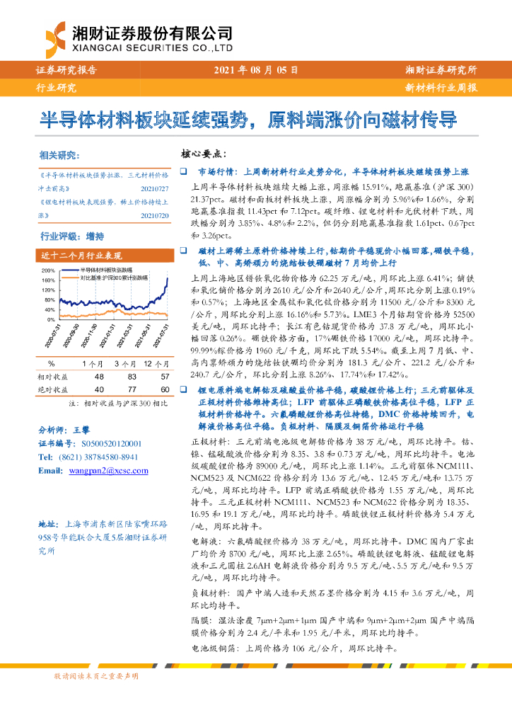 湘财证券:新材料行业周报:半导体材料板块延续强势,原料端涨价向磁材传导.pdf