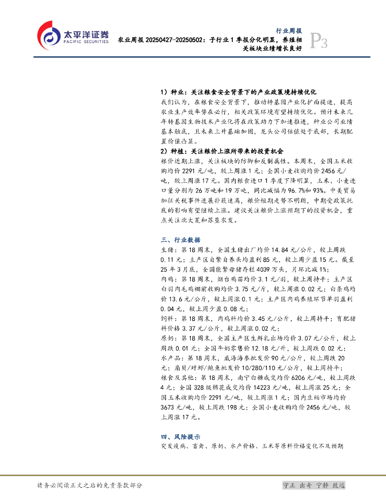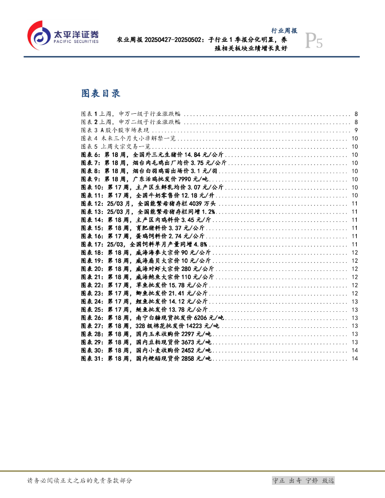 太平洋证券:农业周报:子行业1季报分化明显,养殖相关板块业绩增长良好.pdf