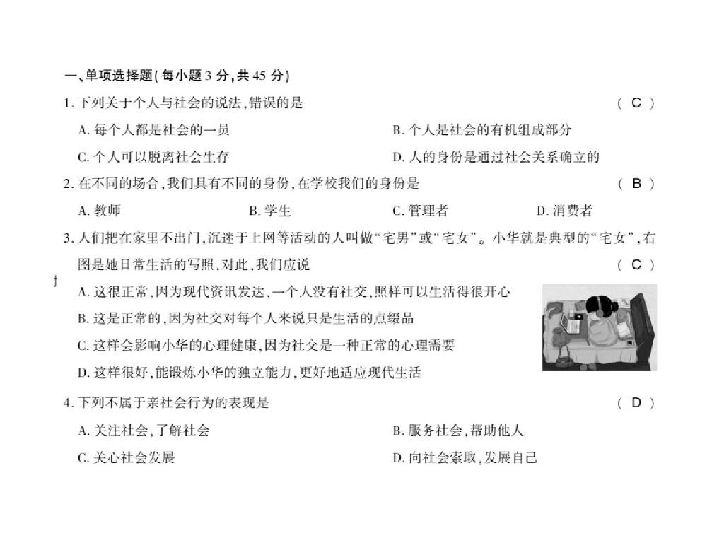 2021人教版八年级道德与法治上册习题课件:第一单元测评卷 (10张).ppt