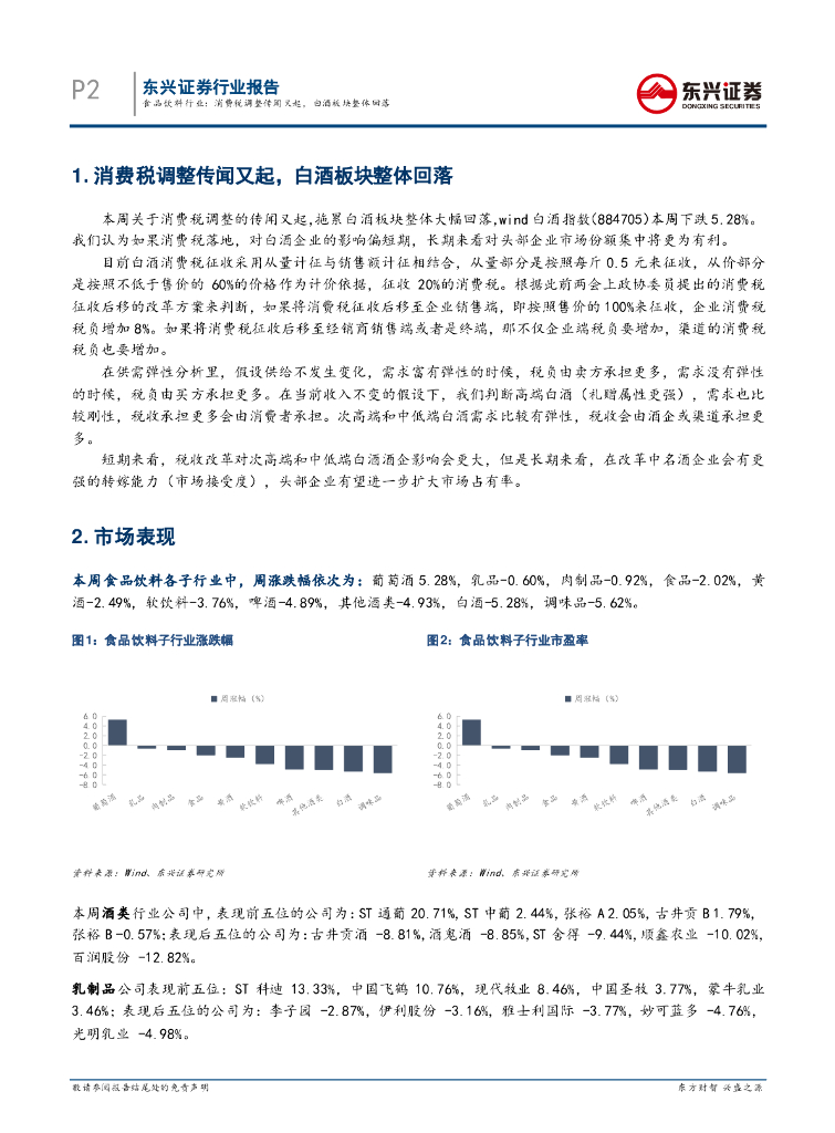 东兴证券:食品饮料行业:消费税调整传闻又起,白酒板块整体回落.pdf