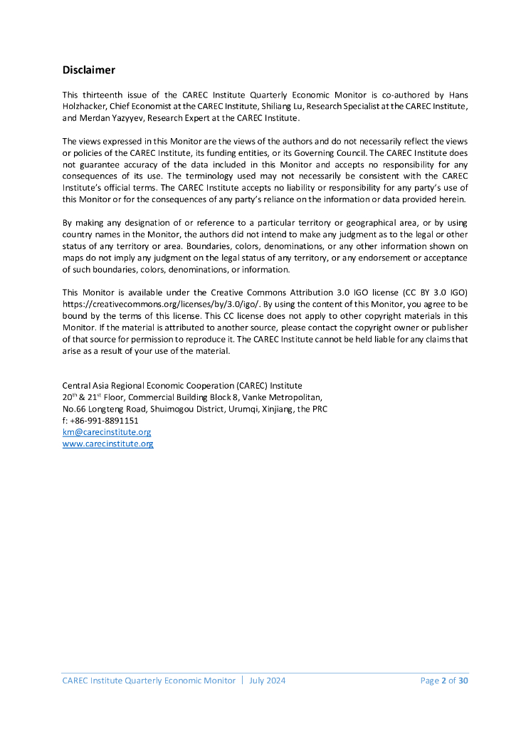 中亚学院:2024中亚区域季度经济监测报告(第十三期)(英文版).pdf