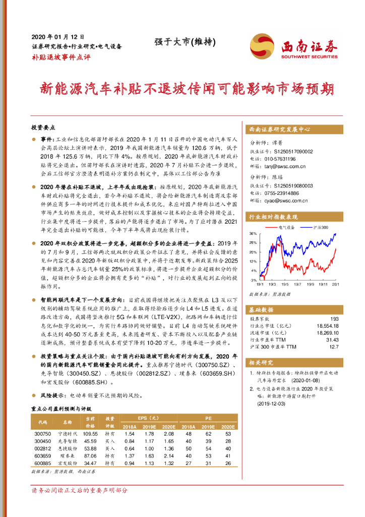 西南证券:电气设备补贴退坡事件点评:新能源汽车补贴不退坡传闻可能影响市场预期.pdf