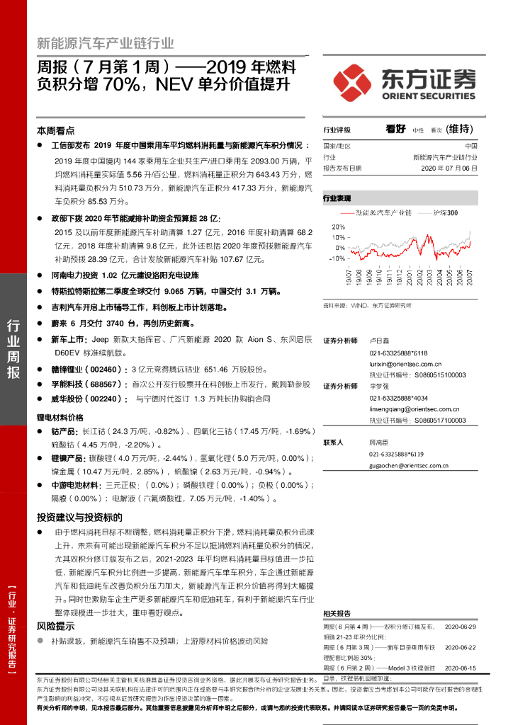 东方证券:新能源汽车产业链行业周报(7月第1周):2019年燃料负积分增70%,NEV单分价值提升.pdf