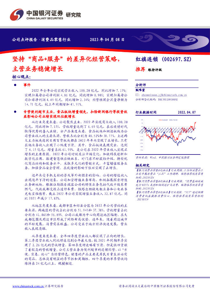 中国银河:红旗连锁(002697)-坚持“商品+服务”的差异化经营策略,主营业务稳健增长.pdf