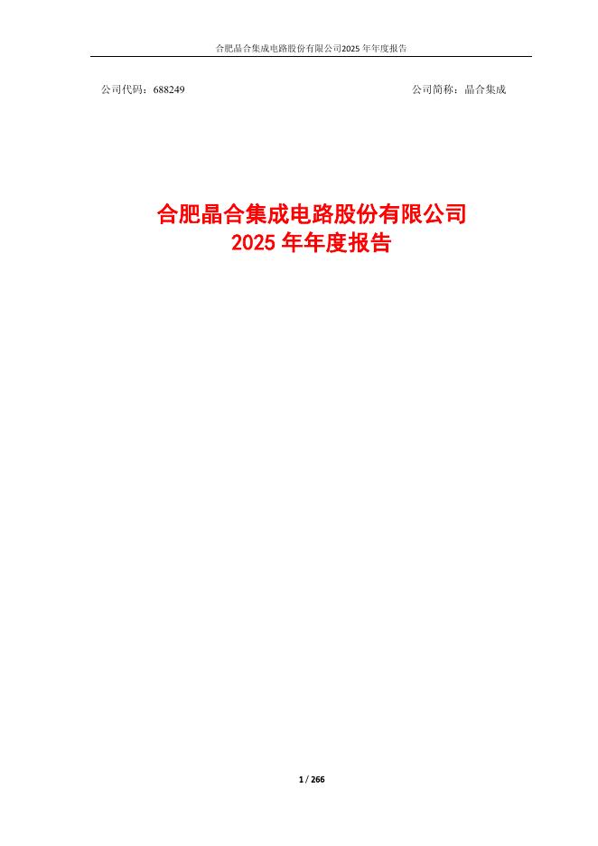 688249-晶合集成:晶合集成2025年年度报告.pdf