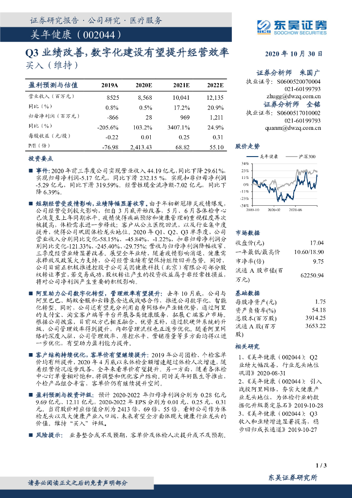 东吴证券:美年健康(002044)-Q3业绩改善,数字化建设有望提升经营效率.pdf