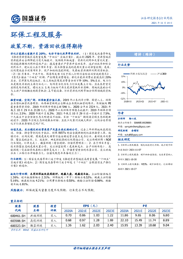 国盛证券:环保工程及服务行业周报:政策不断,资源回收值得期待.pdf