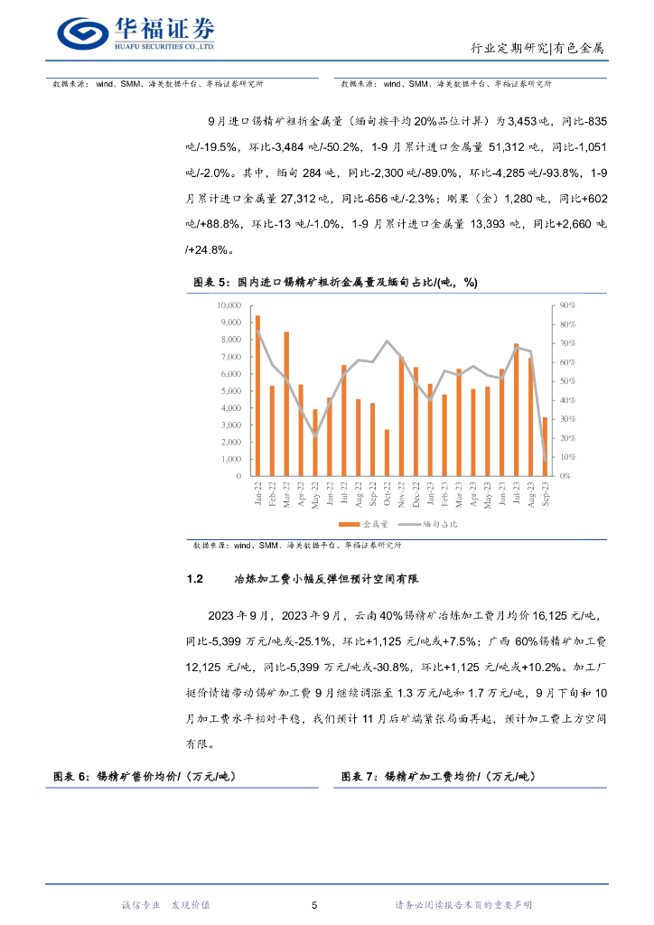 华福证券:锡月度数据跟踪:9月精矿进口下降,基本面持续改善.pdf