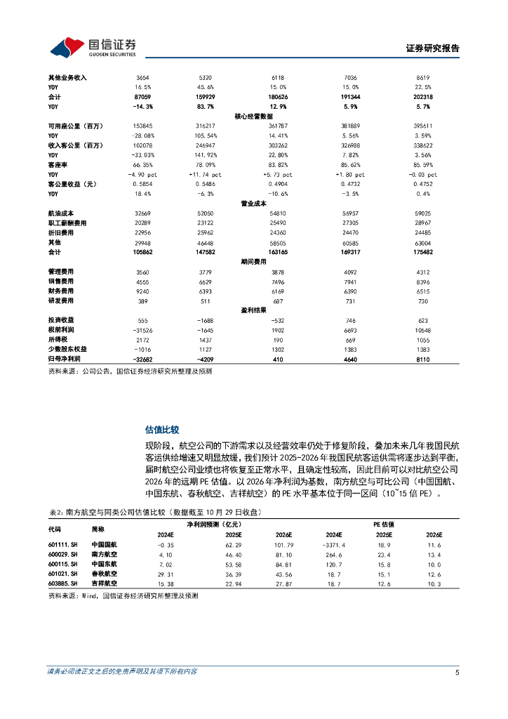 国信证券:南方航空(600029)-三季度业绩表现承压,静待盈利修复.pdf