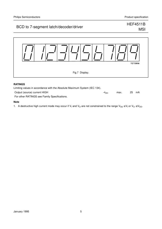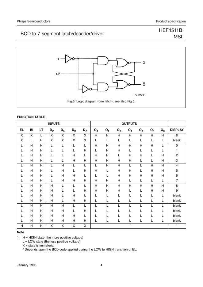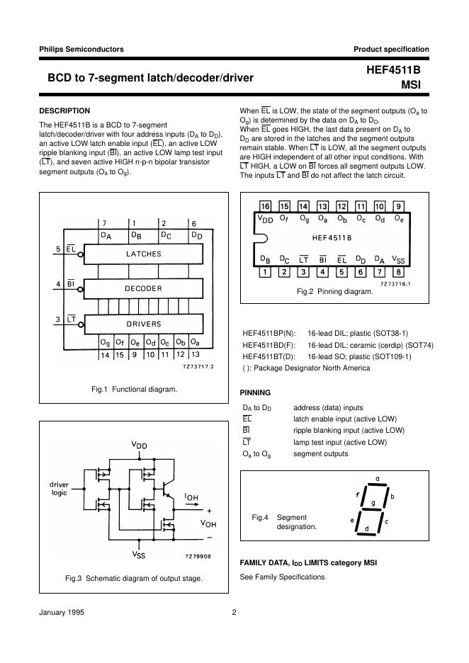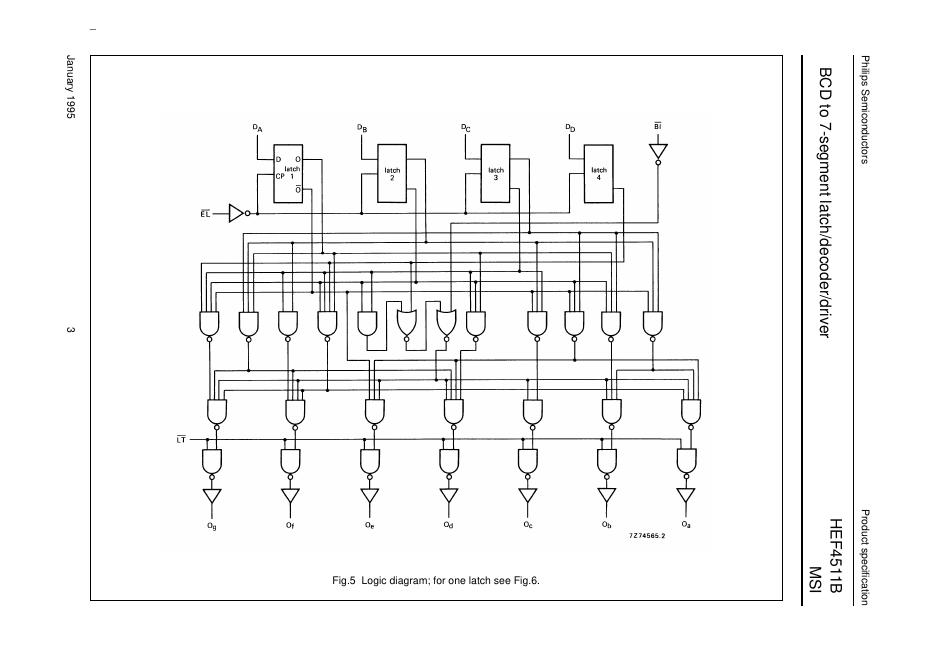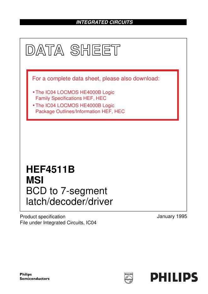 PHILIPS HEF4511B MSI BCD to 7-segment latch/decoder/driver 数据手册.pdf