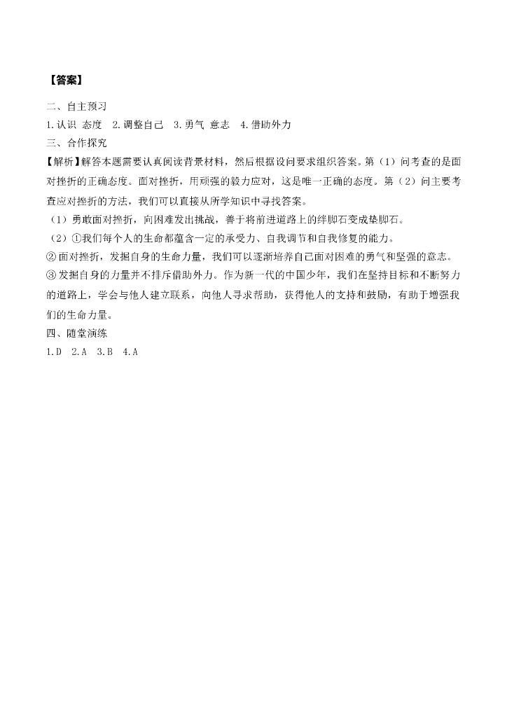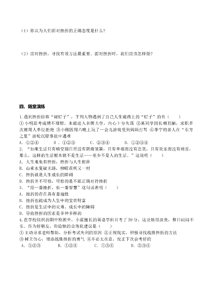 七年级上册 初中道德与法治第2课时 增强生命的韧性.doc