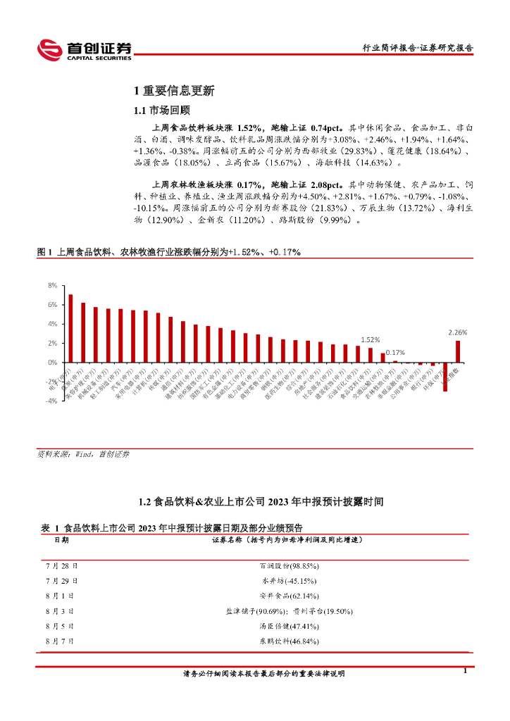 首创证券:食品饮料&农业:生猪价格震荡回落,继续关注养殖板块.pdf